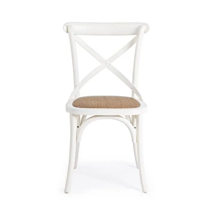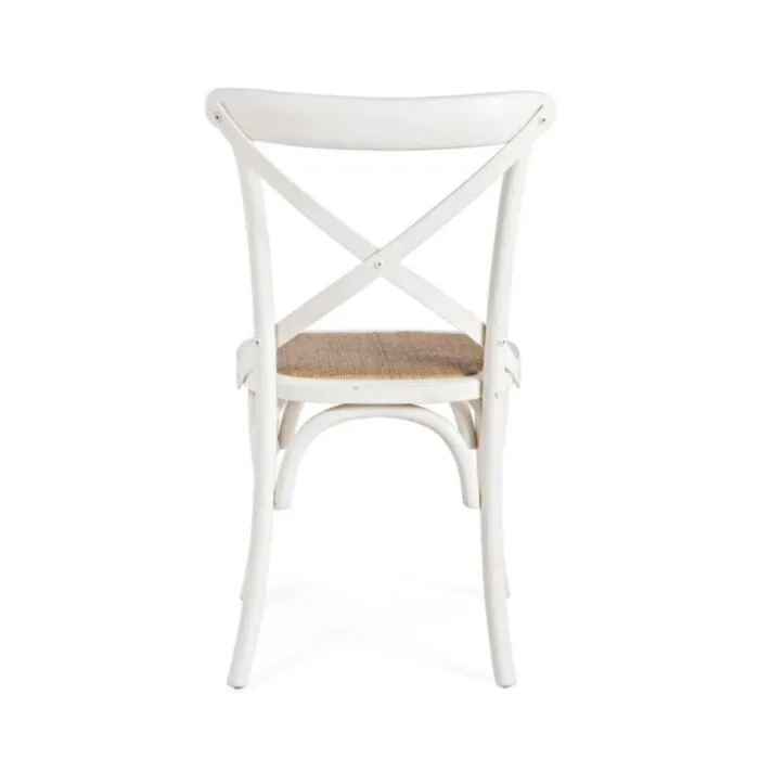 Stol CROSS – bela, je eleganten stol, ki popestri vaš prostor ali okolico. Primeren je tako za jedilnice, kmečke turizme ali opremo gostinskih lokalov. Narejen je iz brestovega lesa, ima podloženo sedišče, kar zagotavlja prijetno sedenje. Oblečen je v naravni ratan.