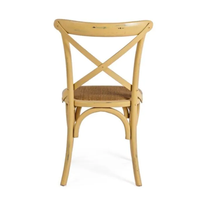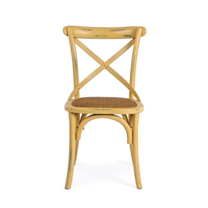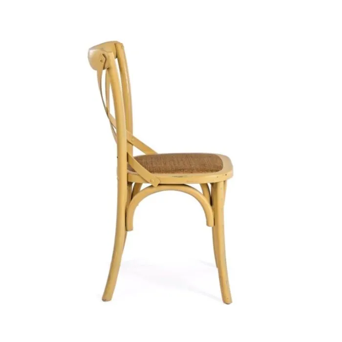 Stol CROSS – oker, je eleganten stol, ki popestri vaš prostor ali okolico. Primeren je tako za jedilnice, kmečke turizme ali opremo gostinskih lokalov. Narejen je iz brestovega lesa, ima podloženo sedišče, kar zagotavlja prijetno sedenje. Oblečen je v naravni ratan.