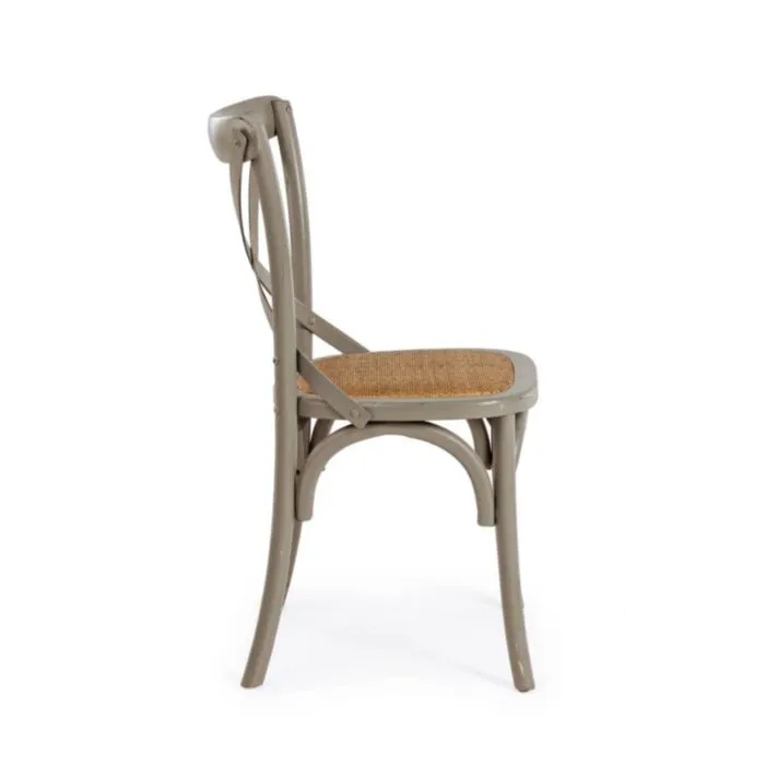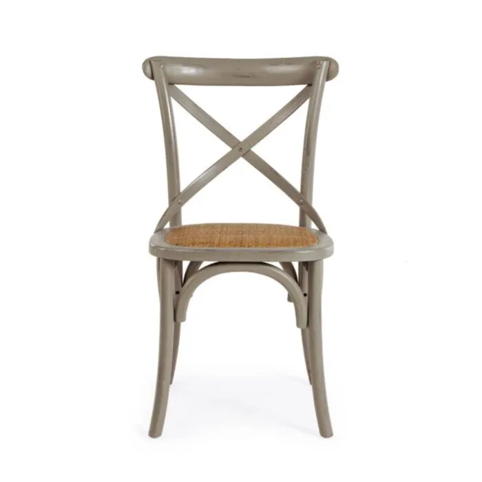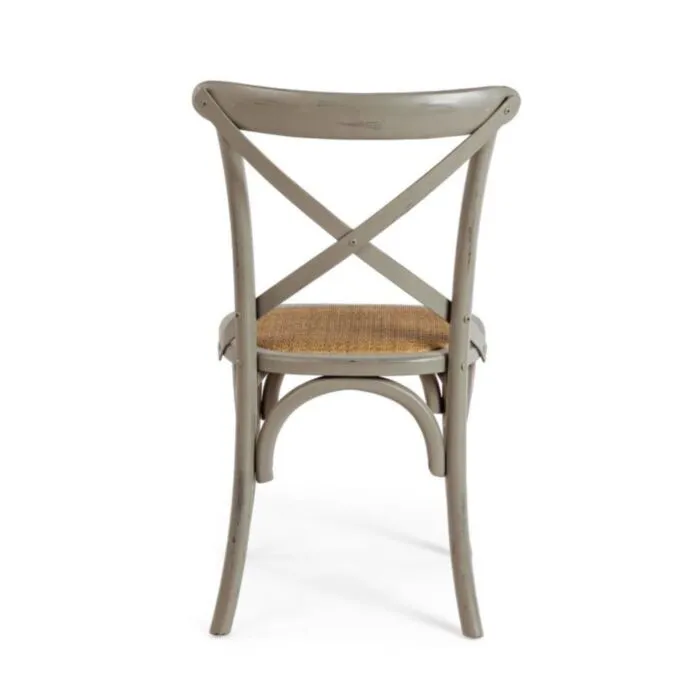 Stol CROSS – siva, je eleganten stol, ki popestri vaš prostor ali okolico. Primeren je tako za jedilnice, kmečke turizme ali opremo gostinskih lokalov. Narejen je iz brestovega lesa, ima podloženo sedišče, kar zagotavlja prijetno sedenje. Oblečen je v naravni ratan.