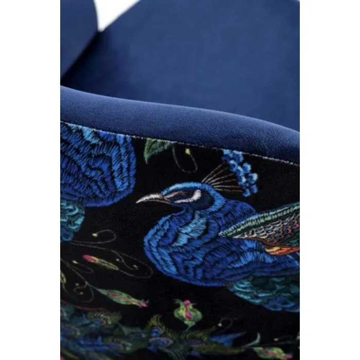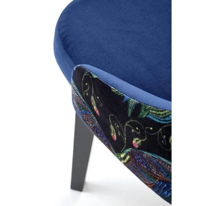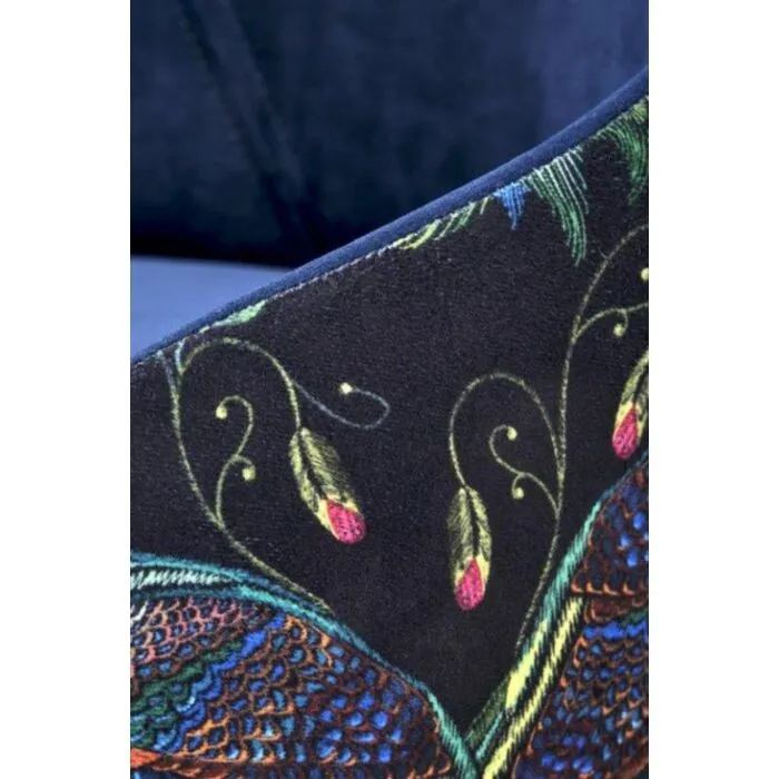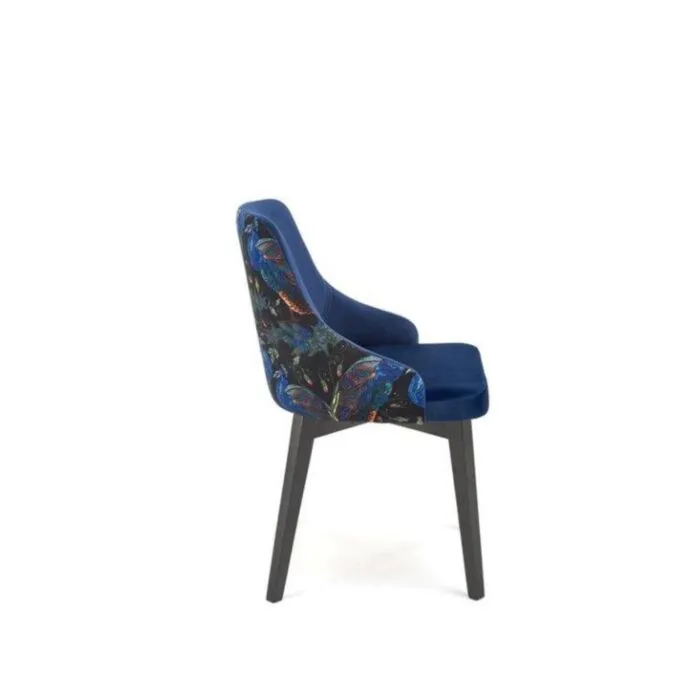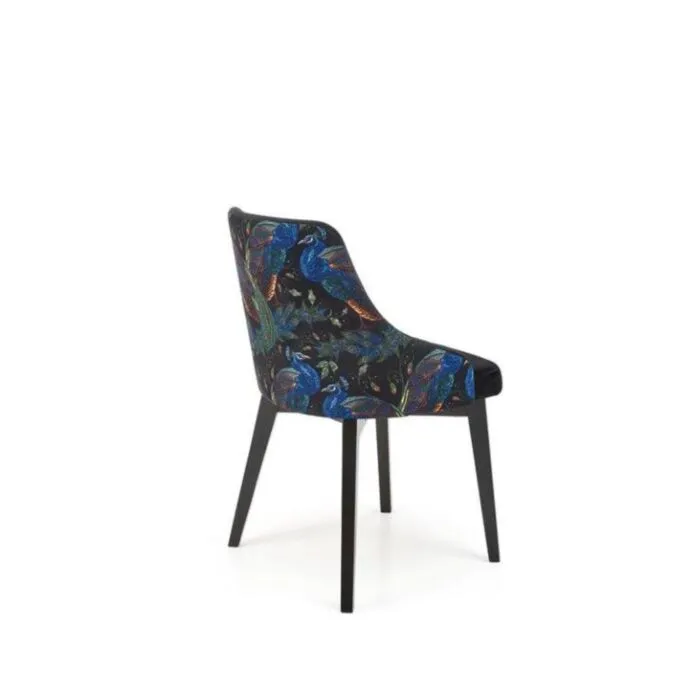Stol FAZAN modra, je eleganten stol, ki s svojim dizajnom popestri vaš prostor. Odlikuje ga dovršen in zelo eleganten dizajn na hrbtni strani stola. Narejen je iz kakovostnega masivno bukovega lesa. Sedišče pa je narejeno iz kakovostnega, žametnega blaga, ki vas nudi udobno in prijetno sedišče.