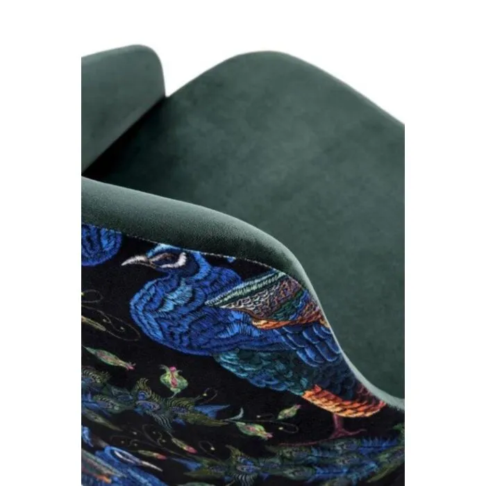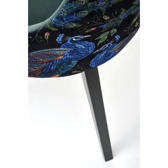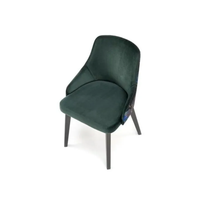 Stol FAZAN temno zelena, je eleganten stol, ki s svojim dizajnom popestri vaš prostor. Odlikuje ga dovršen in zelo eleganten dizajn na hrbtni strani stola. Narejen je iz kakovostnega masivno bukovega lesa. Sedišče pa je narejeno iz kakovostnega, žametnega blaga, ki vas nudi udobno in prijetno sedišče.