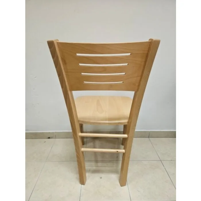 Stol MIHA je izdelan iz kakovostnega masivnega lesa, ki zagotavlja stabilnost in trpežnost. Na voljo je v barvi bukev. Sedišče je na voljo v masiva bukev ali v sivo oblazinjenem blagu, kar omogoča enostavno vzdrževanje ter nudi dodatno udobje.