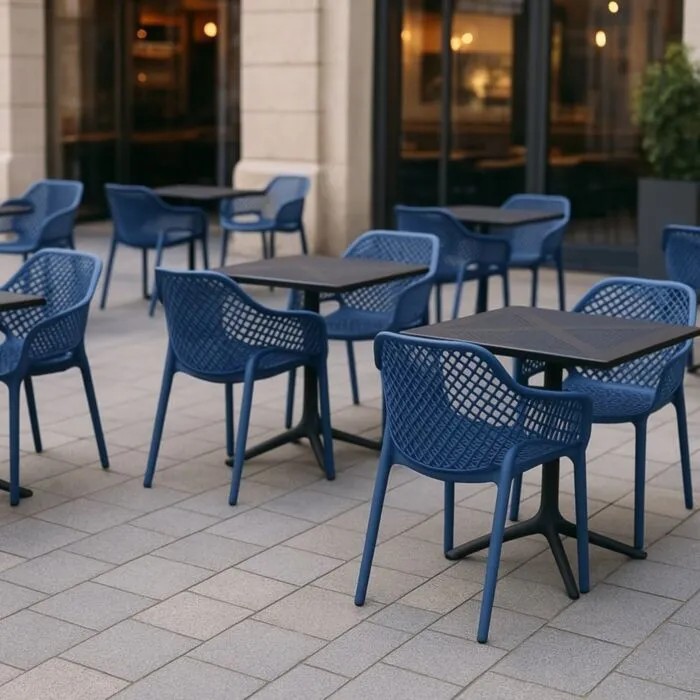 Stol RIO v modri barvi, je moderen stol izdelan iz polipropilena, kateremu so dodana steklena vlakna za še večjo trdnost. Stol je namenjen tako za zunanjo uporabo kot vrtni stol ali pa bo našel mesto v vaši jedilnici. Stol je idealen tudi za terase in gostinske obrate. Stol Rio ima tudi UV zaščito, kar stolu omogoča, da več časa ohranja prvotno barvo na soncu. Stoli so nakladalni, zato pri spravilu vzamejo malo prostora.
