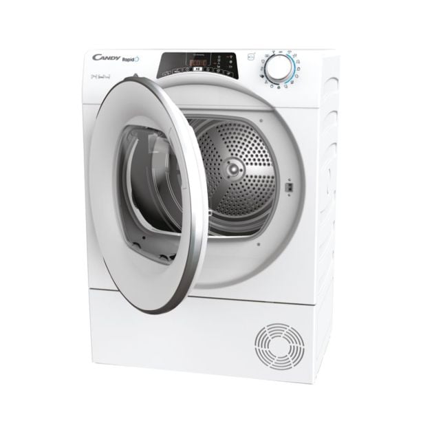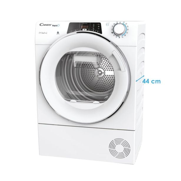 Plitek sušilni stroj Candy RapidO RO4H7A1TCEXS z globino 46,5 cm in zmogljivostjo sušenja 7kg. RapidO sušilni stroj vam ponuja 14 različnih programov sušenja, od tega je 5 hitrih, ki manjše količine perila posušijo v manj kot 1 uri. Sušilni stroj omogoča enostaven n