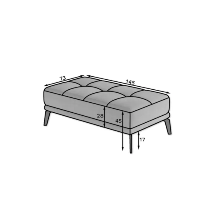 Tabure ROTO je eleganten, pravokoten tabure z črnim kovinskimi nogami. Dobavljiv je v široki paleti različnih barv. Vaši dnevni sobi, spalnici ali predsobi bo dodal sodoben a klasičen predih, lahko se ga uporablja, kot dodaten sedež, naslon za noge ali mizico za pladenj kave.