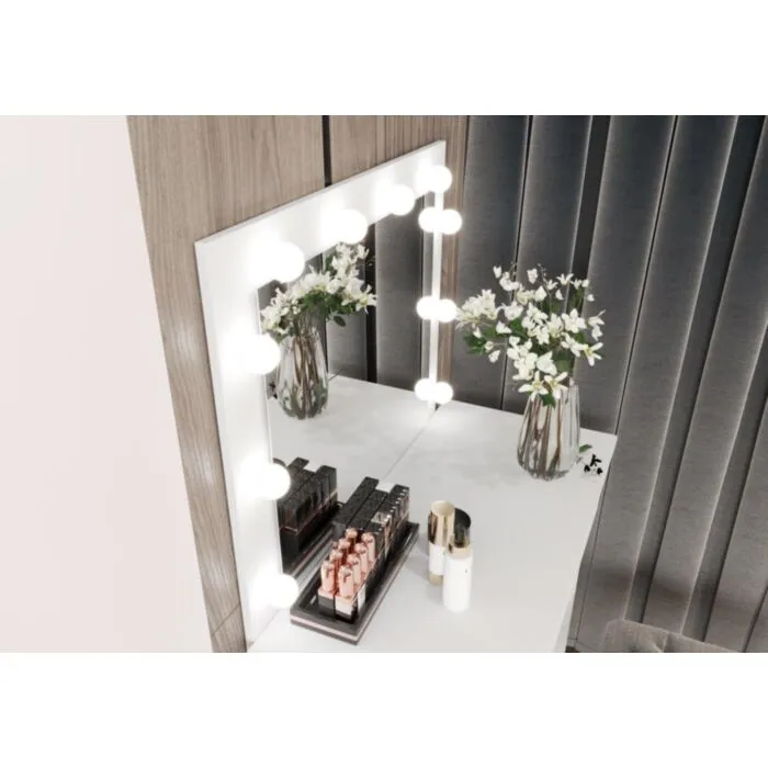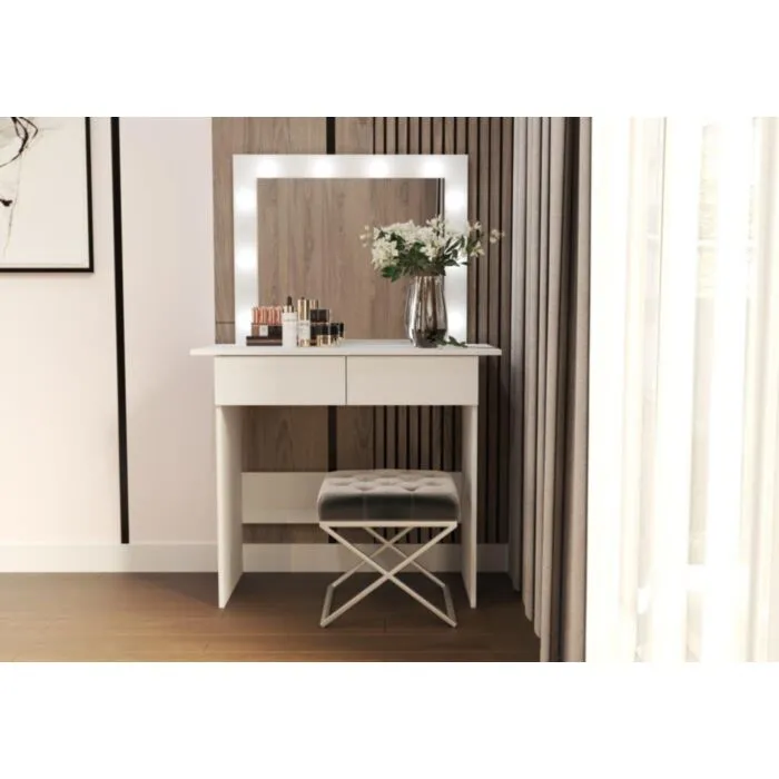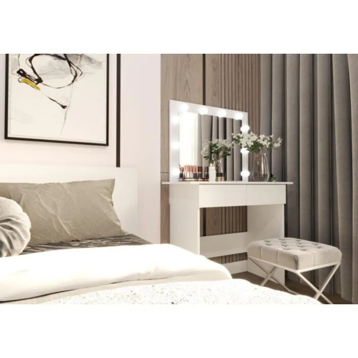 Toaletna miza KIRA je eleganten kos pohištva, ki popestri vaš prostor. Njen poseben dizajn vas bo navdušil, saj prinese vašemu prostoru eleganco in prefinjenost.