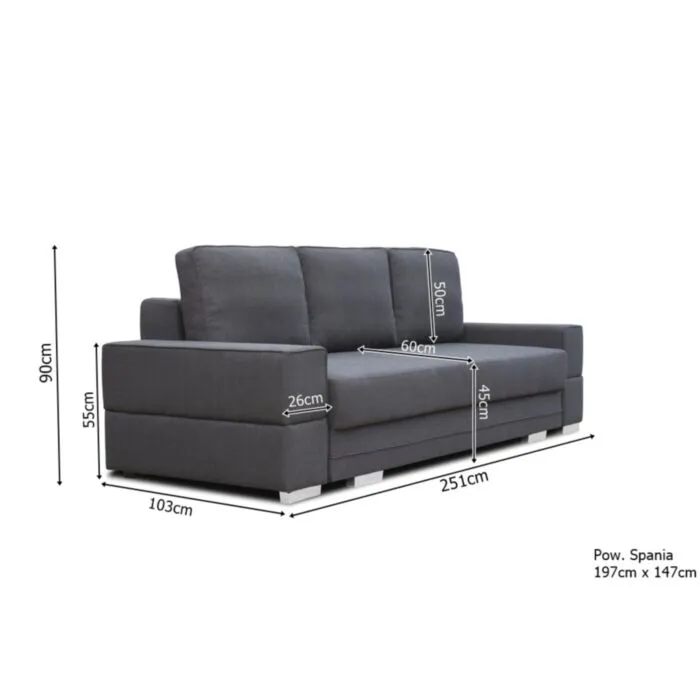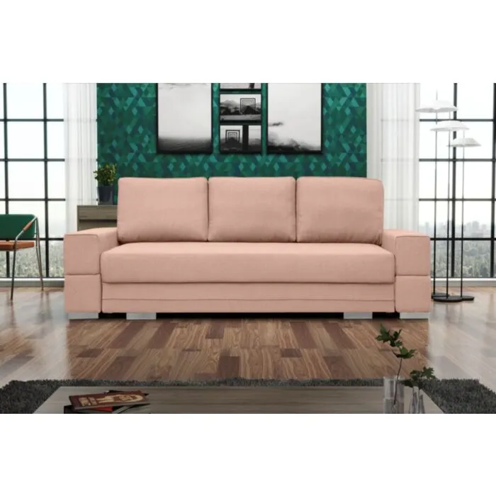 Kavč BRON je eleganten kavč z možnostjo raztegnitve. Narejen je iz kvalitetnega blaga. Pri raztegnitvi vam pomaga mehanizem. Vzmetenje Bonell je znano kot zelo trpežno in udobno ležišče. Kavč ima predal za spravljanje posteljnine.