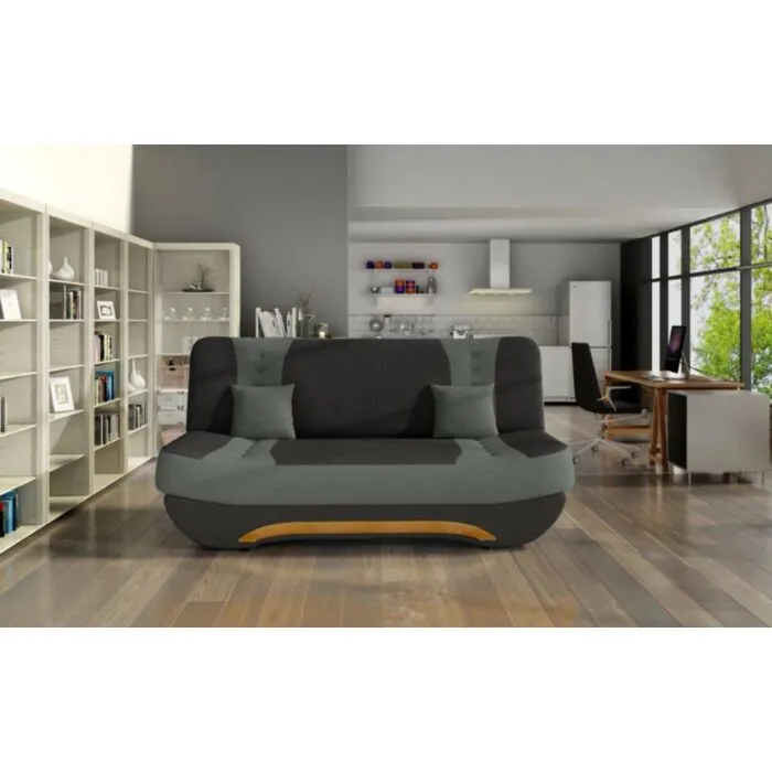 Trosed EMY je garnitura udobna in kvalitetna, saj je narejena iz trpežnega blaga. Je odlična izbira za vašo dnevno sobo. Rahlo zaobljeni robovi in okrasne lesene obrobe na dnu dajajo sedežni garnituri zelo privlačen videz. Oblazinjenje prispeva k veličastnemu videzu. Raztegljiva je v udobno ležišče. Dobavljiv je v večih barvnih kombinacijah. Trosed je vzmeten. V spodnjem zaboju je velik prostor za shranjevanje različnih stvari.