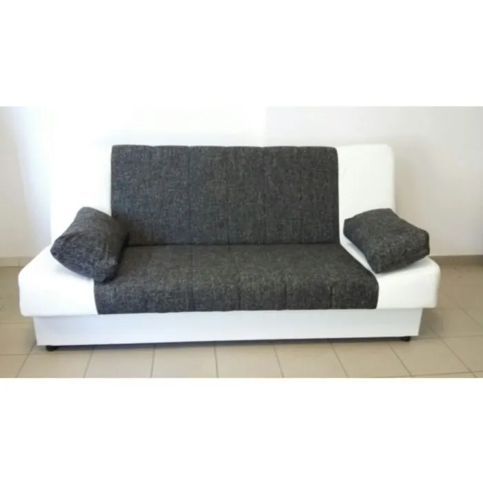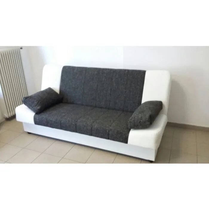 Trosed HAITI v belem umetnem usnju / črnem blagu je moderen in mladosten trosed, ki se raztegne v posteljo pod katero ima tudi predal za posteljnino. Primeren je za vsak prostor, kjer potrebujete praktičnos in funkcionalnost. Dobavljiv je v barvi kot je na sliki.