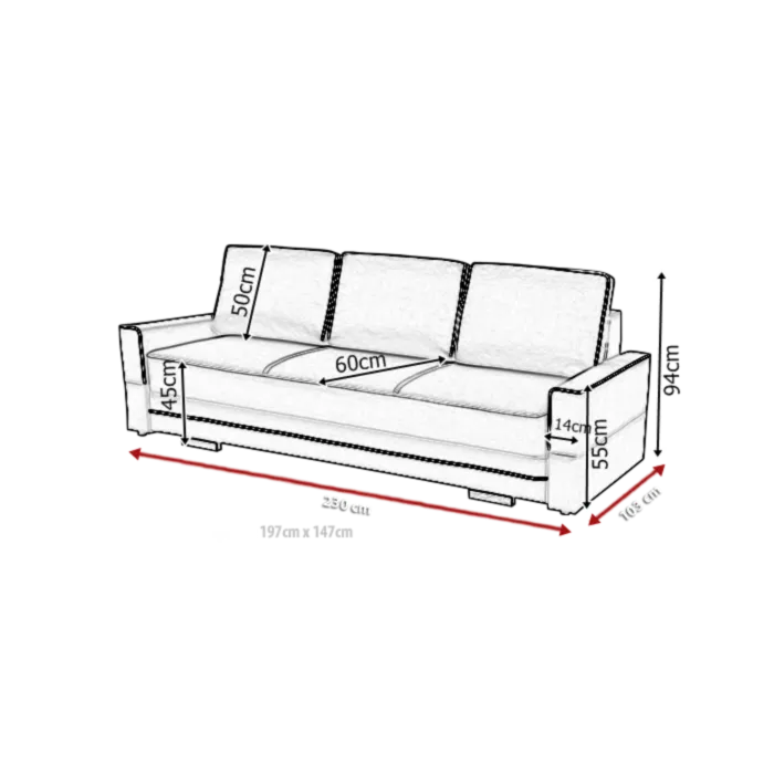 – D: 230 cm x G: 103 cm x V: 94 cm