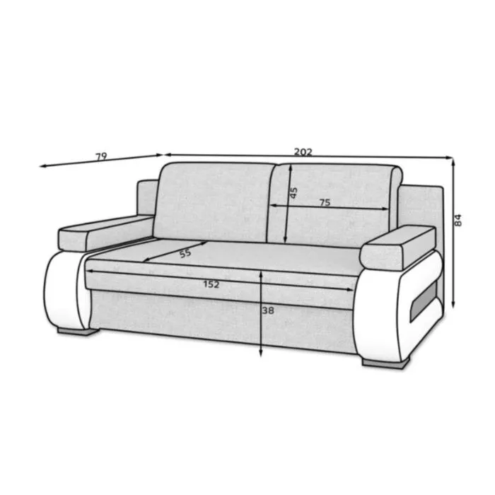 – Višina brez blazin: 73 cm