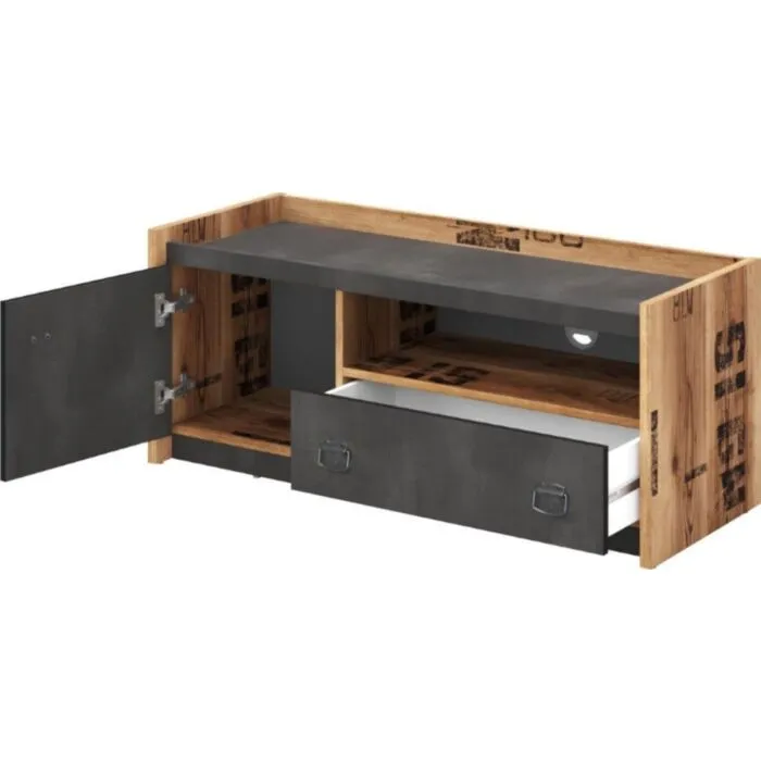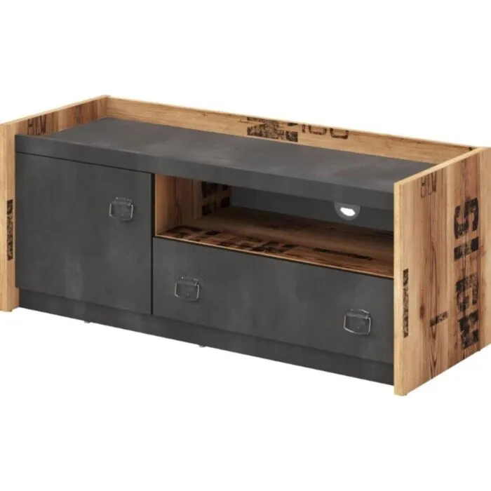TV komoda FERGO je primerna za vsako dnevno sobo. Je unikatnega izgleda in modernih linij. Ima vrata in predal.