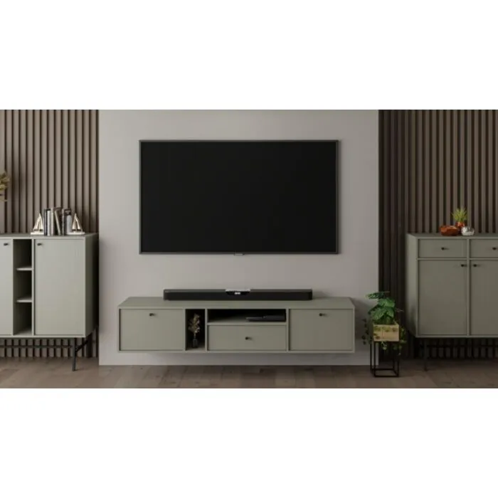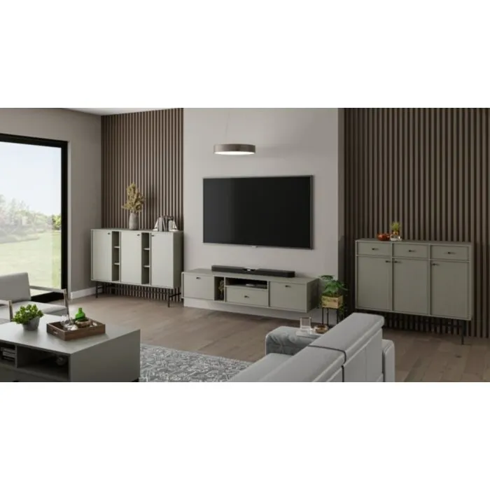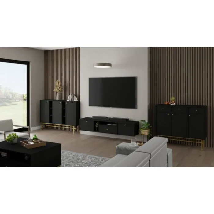 TV omara TOKI 180 je elegantna in kakovostna omarica, ki se prilega v vsako dnevno sobo. Dobavljiva je v treh barvnih kombinacijah: zelena s črnimi ročaji ter črna ali roza z zlatimi ročaji. Narejena je iz laminirane plošče debeline 16 mm. TV omarica je zaradi svoje oblike in visokokakovostnih materialov trpežna in vzdržljiva. Odporna je na praske, udarce in obrabo. Je enostavna za vzdrževanje, saj je površina preprosta za čiščenje in negovanje. Estetsko se poda v vsak prostor ter ima dobro odpornost na madeže in vlago.
