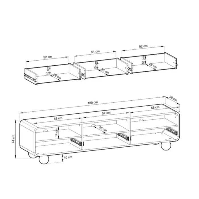 TV omarica ALBI 180 je elegantna in sodobna. Narejena je iz visokokakovostnih materialov. Zaradi svoje oblike in trpežnih nogic zagotavlja dodatno stabilnost. Okrogle nogice dajajo poseben čar. Narejena je iz laminirane plošče debeline 16 mm v kombinaciji MDF-ja debeline 18 mm. Zaradi svoje oblike in visokokakovostnih materialov je trpežna in vzdržljiva. Odporna je na praske, udarce in obrabo. Je enostavna za vzdrževanje, saj je površina preprosta za čiščenje in negovanje. Estetsko se poda v vsak prostor ter ima dobro odpornost na madeže in vlago.