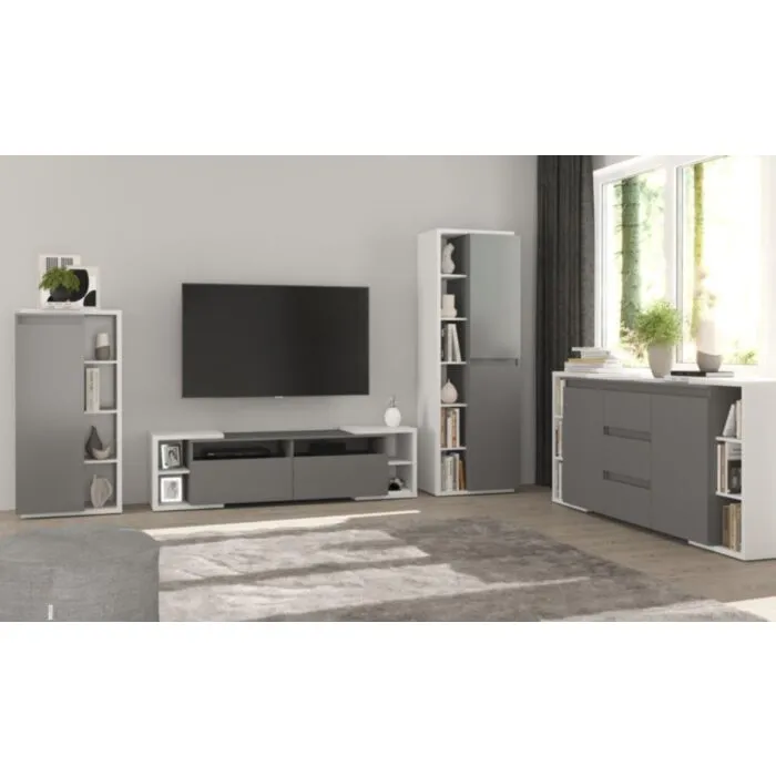 TV omarica FORTUNA je edinstven dizajn, ki združuje preprostost, eleganco in funkcionalnost. Zagotovo bo pritegnila pozornost ljubiteljev moderne in minimalistične notranjosti. Barva v odtenkih sive bo ustrezala vsaki notranjosti.
