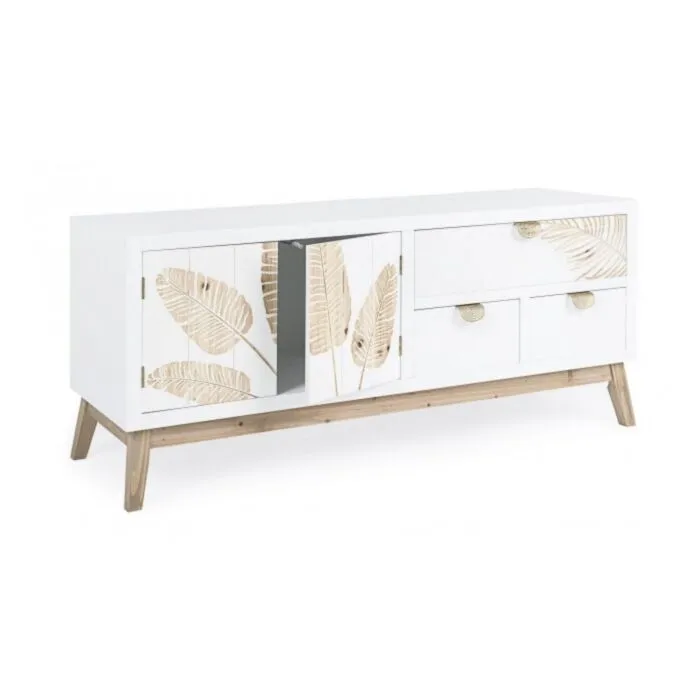 TV regal 2A-3C FOLIUM je narejen iz laminirane plošče in ima jeklene ročaje.