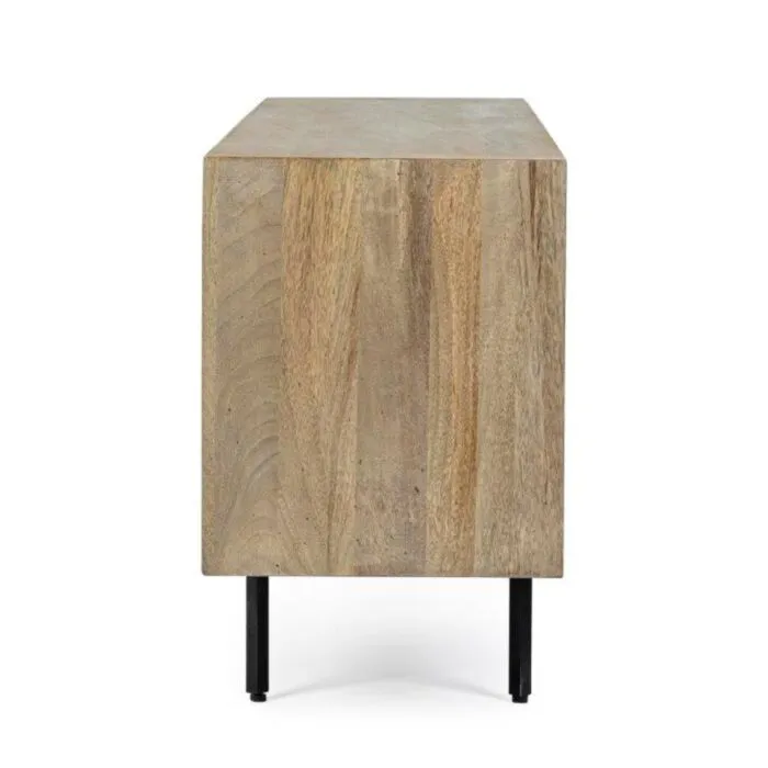 TV regal 4A DARSEY je narejen iz MDF-ja in ima kovinske noge. Struktura je iz lesa, predal ima v vratih.