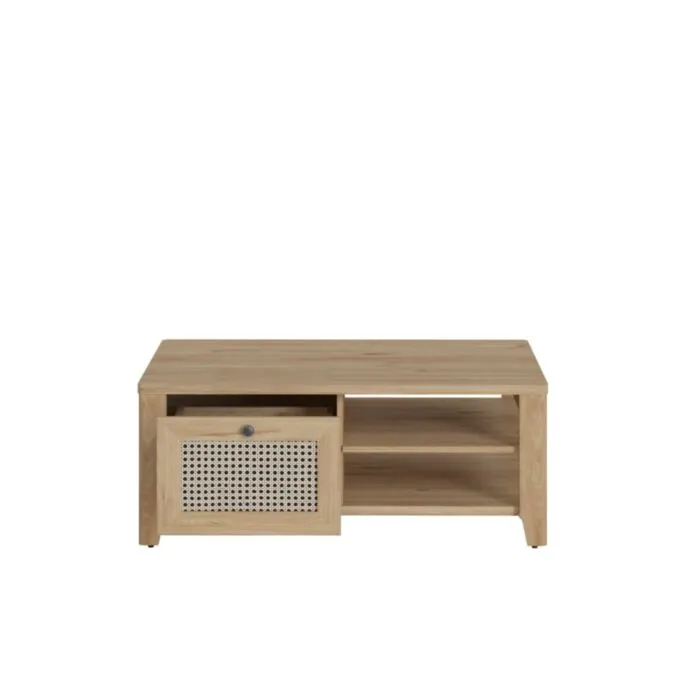 TV regal COCKA je narejen iz kvalitetne laminirane plošče, debeline 16 – 22 mm. Vsebuje tempirano steklo ter LED osvetlitev. Noge so iz plastike, ročke iz kovine. Ima mehko zapiranje. V ceni je všteto 1 x vitrina, 1 x TV regal, 1 x nizka komoda, 2 x polici, 1 x vioka komoda ter 1 x klubska mizica.