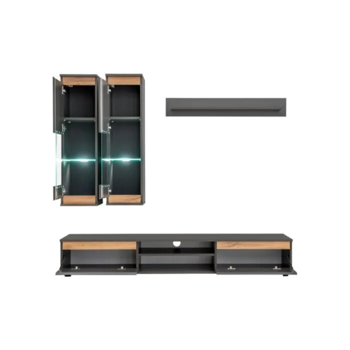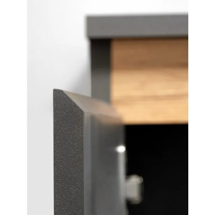 TV regal ODOM je narejen iz kvalitetne laminirane plošče v kombinaciji antracit in hrast barve.