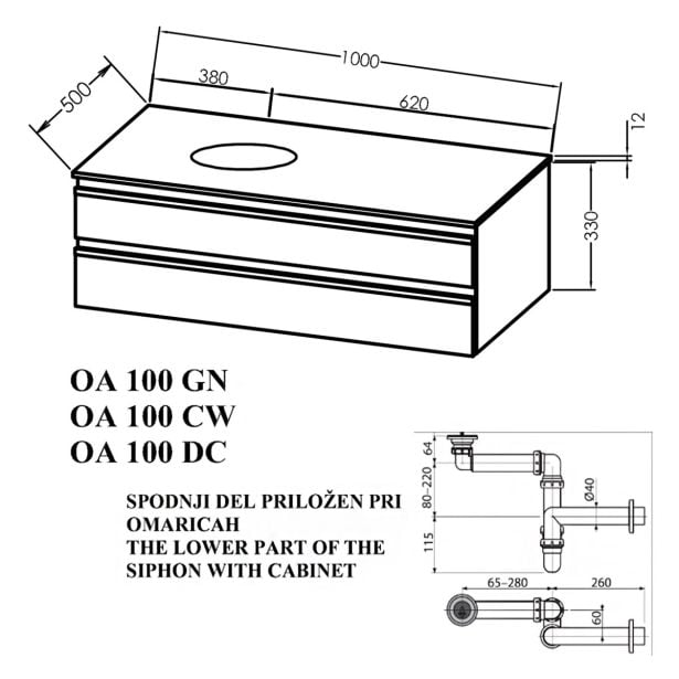 Dimenzije omarice: 1000 x 330 x 500 mm.