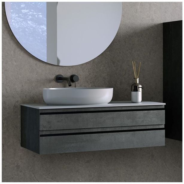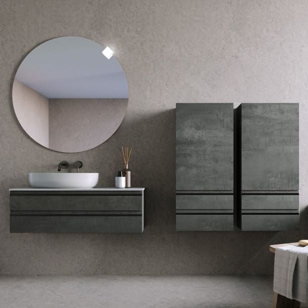 Kopalniška elegantna linija Alexis je vrhunski slovenski dizajn. Kolpa San OA 100 DC v barvi temnega betona, je izjemno praktična in estetska omara. Ohišje je oblikovano iz trpežnih laminiranih plošč (LTD) iz rafinirane iverne plošče, medtem ko je sprednji del predalov izdelan iz plošče (MDF), prekrite s 3D folijo v enaki barvi kot telo, kar ustvarja harmoničen videz. ter edinstven material Kerrock zagotavljajo trajnost in enostavno vzdrževanje.