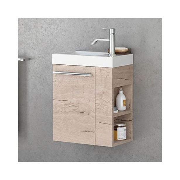 Kopalniška omara Kolpasan z umivalnikom Kiki OUK 40 L CW je popolna rešitev za manjše kopalnice, združuje funkcionalnost in fleksibilnost v kompaktni enoti. Izdelana iz trpežne visokokakovostne iverne plošče (LTD) v hrast barvi, ta omara ne samo, da zagotavlja estetski užitek, temveč tudi praktično uporabnost.