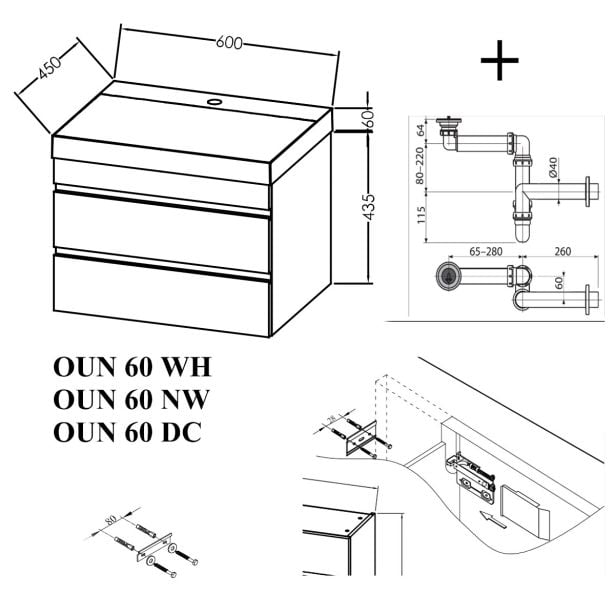 – Dimenzija ( Š x V x G): 600 x 435 + 60 umivalnik x 450 mm.