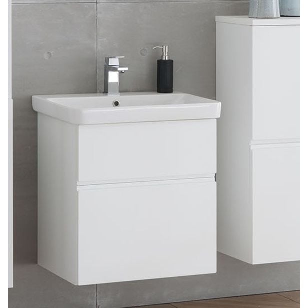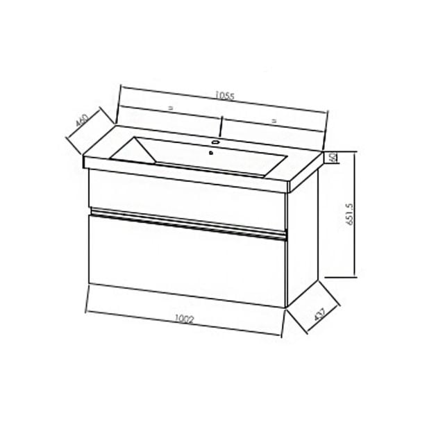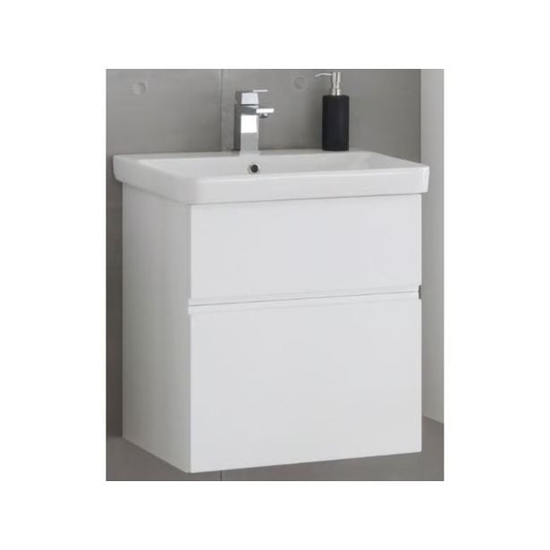 Umivalniška enota Kolpa san Ouo 105 v beli barvi Oxana s keramičnim umivalnikom je izdelan iz oplemenjene iverne plošče.