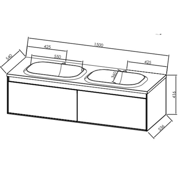 Omarica meri po širini 1500 mm, višini 416 mm in globini 540 mm. Priložena sta dva umivalnika iz litega marmorja, ki sledita celotni velikosti omare. S svojo funkcionalnostjo in elegantnim dizajnom bo omarica Pandora popestrila vašo kopalnico, ustvarila prostor za shranjevanje in poudarila moderno estetiko vašega prostora.