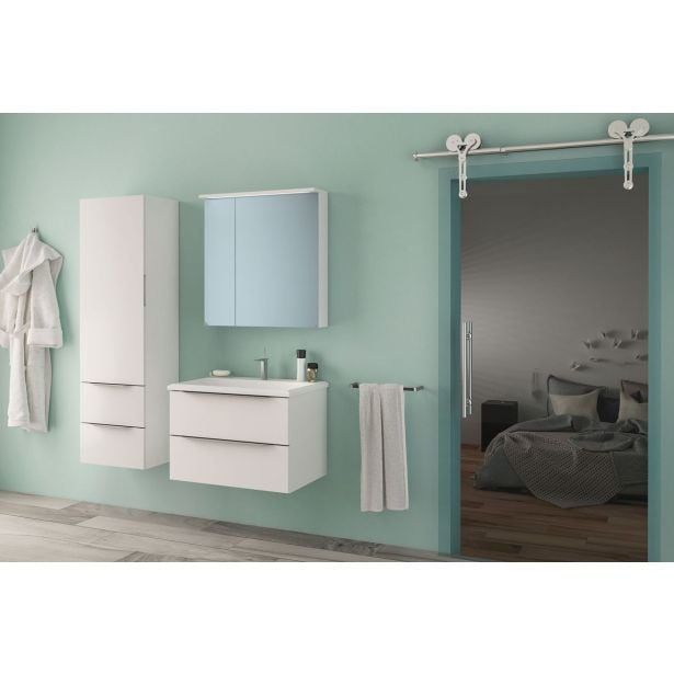 Slovensko oblikovana kopalniška omara Kolpasan OUT 110 WH, linije Tara z umivalnikom je popolna kombinacija funkcionalnosti, estetike in trajnosti. Z njo bo vsaka vsakdanja kopalniška dejavnost postala prijetna izkušnja.