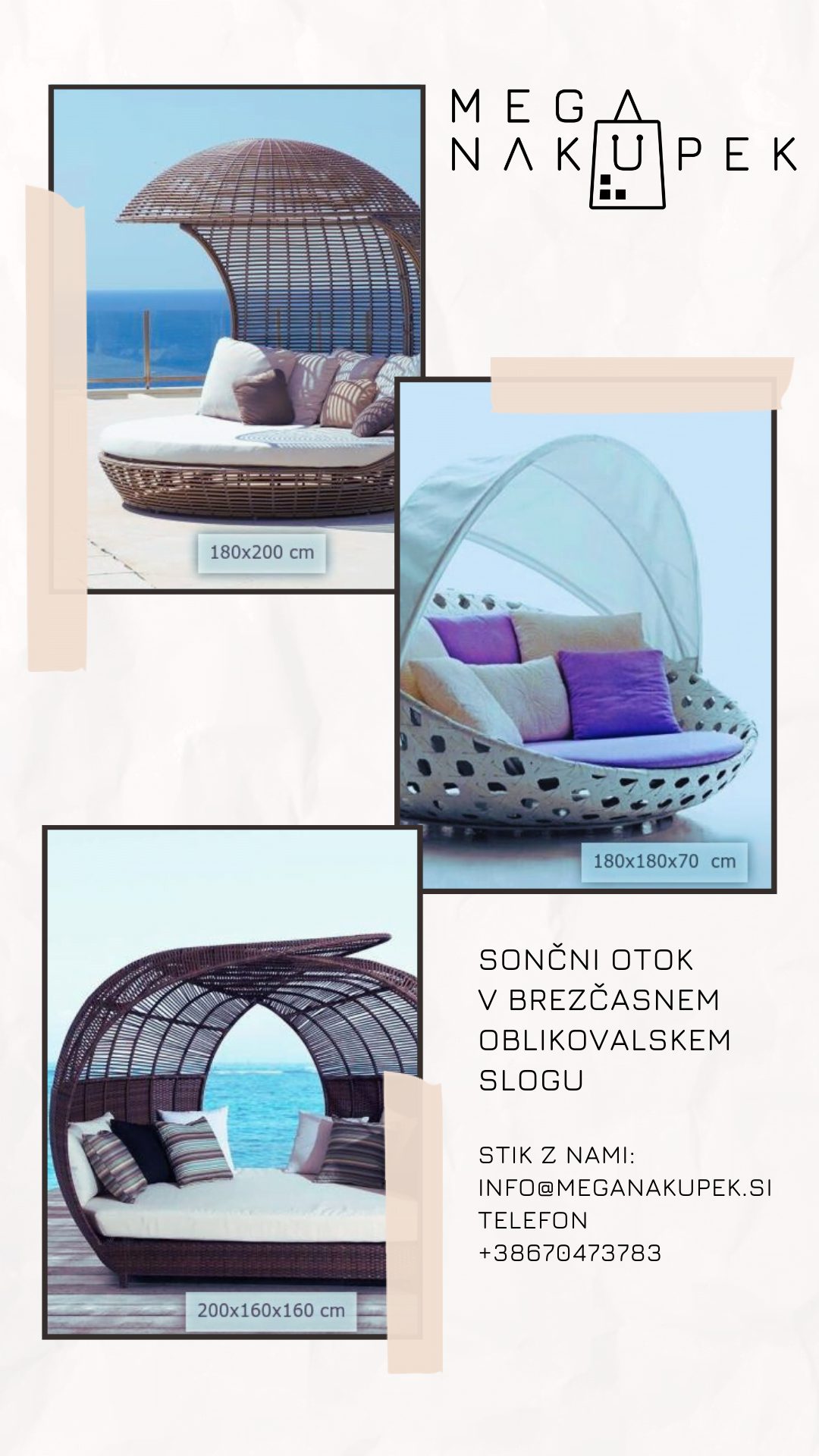 Sončni otok – Vrtna sedežna garnitura je okrogel ležalnik s streho. Vzemite si urico časa zase, privoščite si branje dobre knjige ali se v dobri družbi udobno namestite in poveselite na vrtnem sončnem otoku iz PE ratana in blazinami. Tako barvo ratana kot blazin je mogoče izbirati – številne so na voljo. Naj bo na vrtu res udobno z Meganakupek.si vrtnim pohištvom 🏖