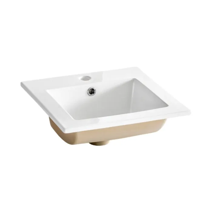 Vgradni kopalniški umivalnik SARE 40D je narejen iz bele keramike in se lepo poda v vsakršno kopalnico.