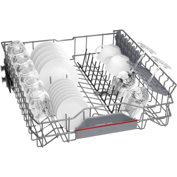Bosch vgradni pomivalni stroj nudi zmogljivost pomivanja 14 pogrinjkov, s posebno funkcijo sušenja posode. Opremljen je z dvema košarama, ki se ponašata s prilagodljivo postavitvijo in z dodatnim predalom za pribor.