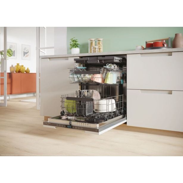 Aquastop ? Tretja košara ? Samodejno odpiranje vrat ? Po višini nastavljiva zgornja košara ? 8 programov ? 5 temperatur ? Wash & dry 35′ ? Zamik vklopa 1-23 h ? Držalo za skodelice ? Foldable racks ? Sistem Powerwash ? Wi-fi + Bluetooth