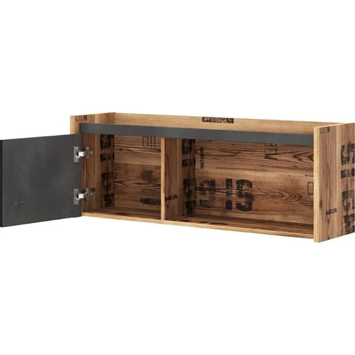 Viseča omarica FERGO je primerna za vsak prostor. Je unikatnega dizajna in izgleda, ki bo popestril vsako sobo. Na levi strani ima majhen predalček zakrit s vrati, na desni strani pa odprt predal.