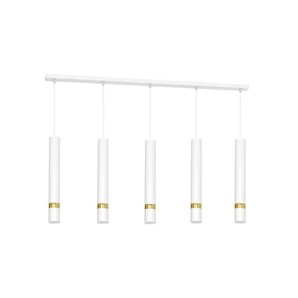 Elegantna obesna svetilka Joker v beli barvi s prefinjenim zlatim vložkom prinaša osupljiv vizualni učinek. S petimi senčniki je idealna za večje prostore, saj ustvarja izjemno svetlobo. Svetilka se ponaša s sodobnim dizajnom, ki se odlično vključuje v različne notranje prostore. Prodana je brez svetlobnega vira, kar omogoča prilagoditev moči, barve in intenzivnosti svetlobe z uporabo žarnic s podnožjem GU10 (5xGU10). S svojo funkcionalnostjo in estetsko dovršenostjo bo Joker svetilka odličen dodatek vašemu domu.