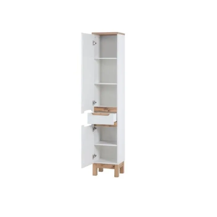 Visoka omara ALI 35D 2 je sodobna in elegantna omara za vašo kopalnico. Narejena je iz kvalitetnih materialov in ima visoko odpornost na praske, tekočine in obrabo. Kopalniški element ima tudi mehko zapiranje.