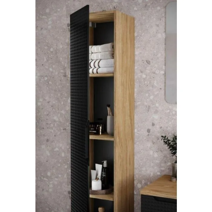 Kopalniški blok DIAMANT 120 črna je možno naročiti v kompletu (kopalniški bloki DIAMANT črna) ali pa po posameznih elementih po vaši izbiri. Visoka omara DIAMANT 35 črna je modernega dizajna. V kombinaciji črne in pridihom hrast barve daje eleganten videz. Izdelan je iz laminirane ter MDF plošče. Vsebuje mehko zapiranje.