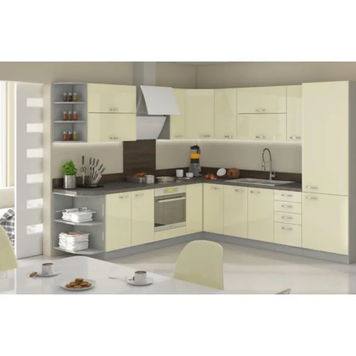 Visoka omara ELITE 40D je sestavljena iz fronte iz MDF plošče, debeline 16 mm, robovi so iz ABS 1 mm. Korpus je narejen iz laminirane plošče, debeline 16 mm, robovi so iz melamina. Kuhinjski element je na voljo v treh barvah visokega sijaja. V komentarju dopišete, katero barvno kombinacijo želite. Kuhinjski elementi imajo sistem mehkega zapiranja.