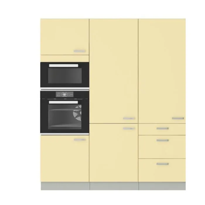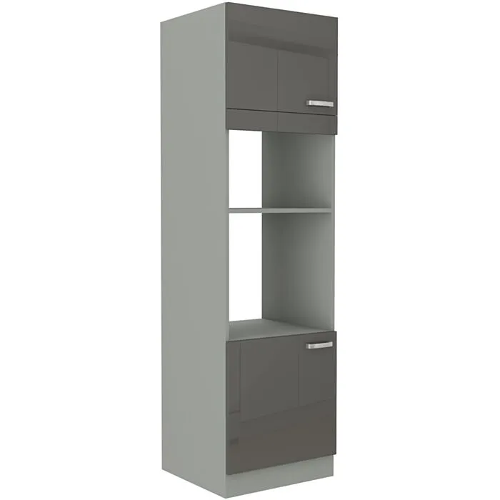 Visoka omara ELITE 60D 2 je sestavljena iz fronte iz MDF plošče, debeline 16 mm, robovi so iz ABS 1 mm. Korpus je narejen iz laminirane plošče, debeline 16 mm, robovi so iz melamina. Element je namenjen vgradnji pečice in ima tudi prostor za mikrovalovno pečico. Kuhinjski element je na voljo v treh barvah visokega sijaja. Kuhinjski elementi imajo sistem mehkega zapiranja.