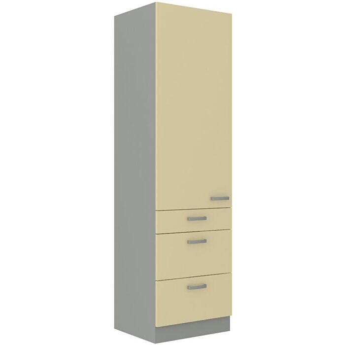 Visoka omara ELITE 60D 4 je sestavljena iz fronte iz MDF plošče, debeline 16 mm, robovi so iz ABS 1 mm. Korpus je narejen iz laminirane plošče, debeline 16 mm, robovi so iz melamina. Kuhinjski element je na voljo v treh barvah visokega sijaja. V komentarju dopišete, katero barvno kombinacijo želite. Kuhinjski elementi imajo sistem mehkega zapiranja.