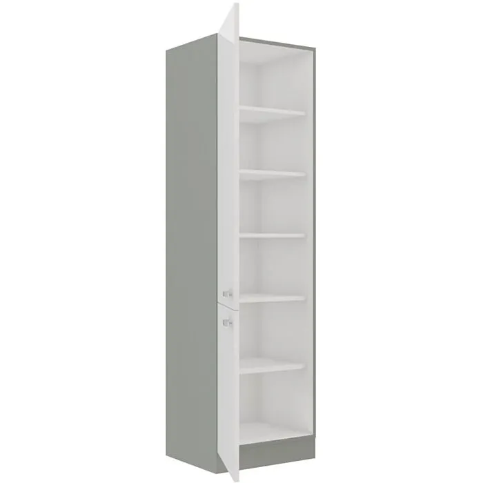Visoka omara ELITE 60D je sestavljena iz fronte iz MDF plošče, debeline 16 mm, robovi so iz ABS 1 mm. Korpus je narejen iz laminirane plošče, debeline 16 mm, robovi so iz melamina. Kuhinjski element je na voljo v treh barvah visokega sijaja. V komentarju dopišete, katero barvno kombinacijo želite. Kuhinjski elementi imajo sistem mehkega zapiranja.