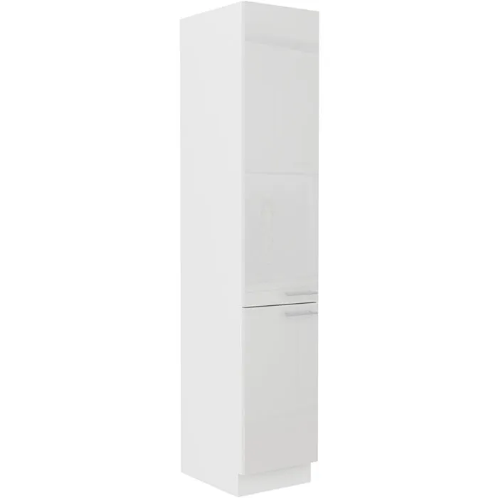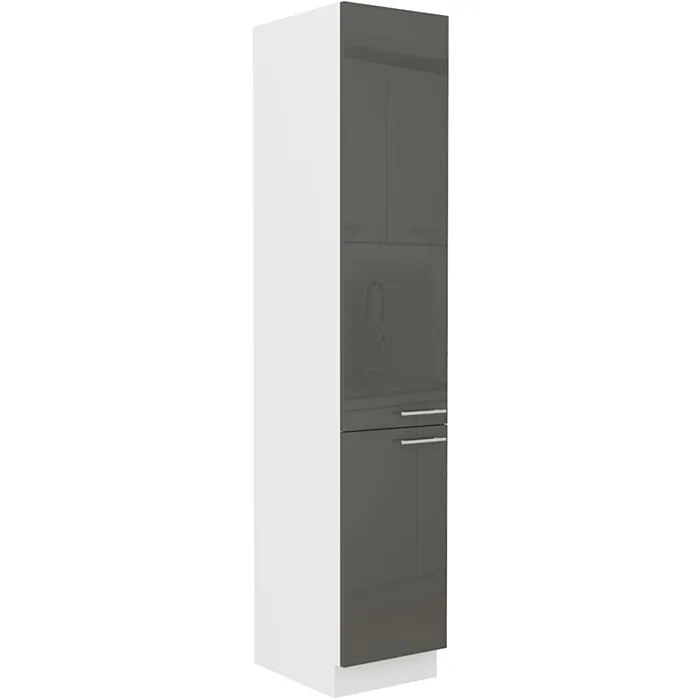 Visoka omara ELZA 40D  je sestavljena iz fronte iz MDF plošče, debeline 16 mm, robovi so iz ABS 1 mm. Korpus je narejen iz laminirane plošče, debeline 16 mm, robovi so iz melamina. Kuhinjski element je na voljo v capuccino barvi visoki sijaj, beli barvi visoki sijaj in sivi barvi visoki sijaj. V komentarju dopišete, katero barvno kombinacijo želite. Kuhinjski elementi imajo sistem mehkega zapiranja.