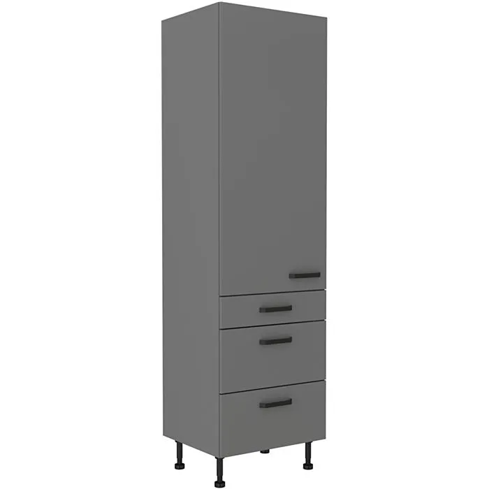 Visoka omara NITA 60 DK 3P je sestavljena iz MDF plošče, debeline 16 mm, robovi so iz ABS 1 mm. Korpus je narejen iz laminirane plošče, debeline 16 mm, robovi so iz melamina. Kuhinjski element je na voljo v barvi antracit in ima mehko zapiranje.