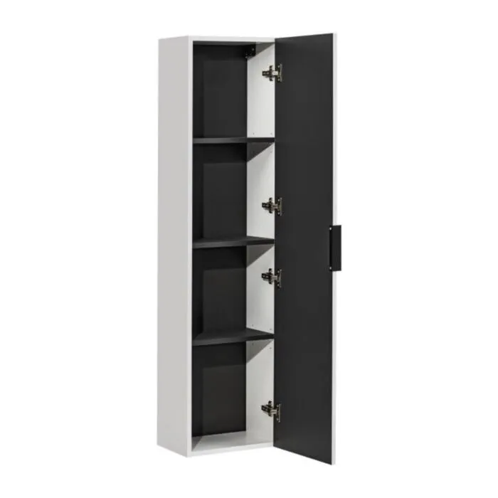 Visoka omarica PIJA 35D v beli barvi. Narejena je iz laminirane plošče debeline 16 mm. Vsebuje mehko zapiranje.