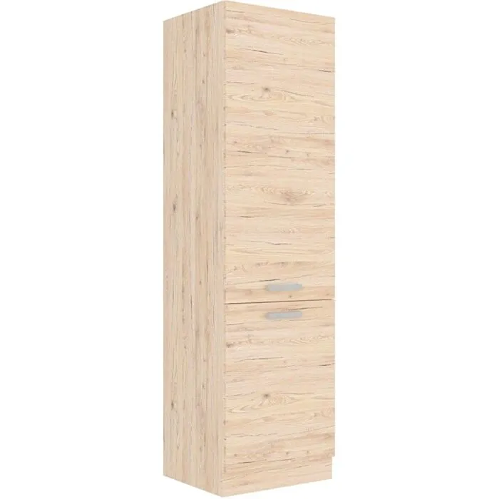 Visoka omara SANREMO 60D je narejena iz laminirane plošče, debeline 16 mm, robovi so iz melamina. Na voljo je v barvi hrasta.