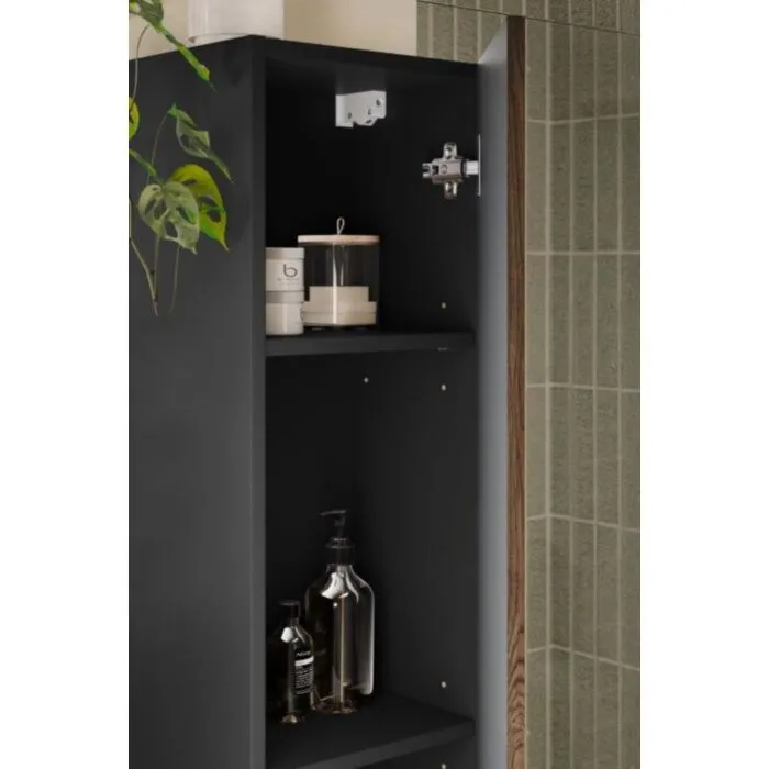 Kopalniški blok TAMY je možno naročiti v kompletu, ali pa po posameznih elementih po vaši izbiri. Visoka omara TAMY 30 je modernega dizajna. V barvi temnega hrasta s kombinacijo črne mat barve, daje eleganten videz. Izdelan je iz laminirane ter MDF plošče. Vsebuje mehko zapiranje. Visoka omara ima način odpiranja push to open.
