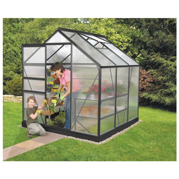 Komplet rastlinjaka iz prašno lakiranih aluminijastih profilov in zasteklitve iz približno 4 mm debelih, UV-stabiliziranih dvostenskih plošč (PC).