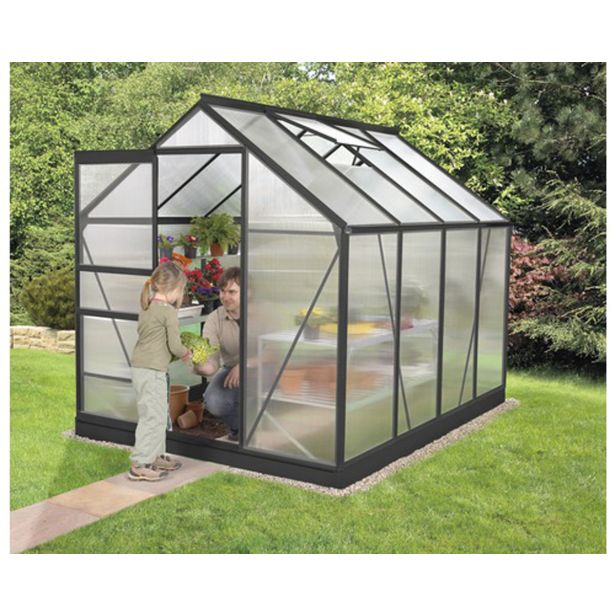 Komplet rastlinjaka iz prašno lakiranih aluminijastih profilov in zasteklitve iz približno 4 mm debelih, UV-stabiliziranih dvostenskih plošč (PC).