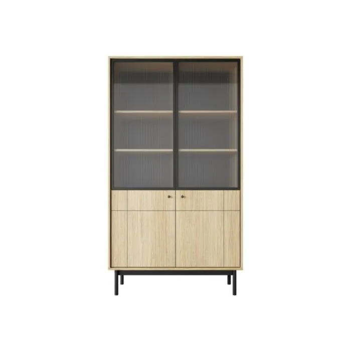 Vitrina JAPONI hrast je elegantna in preprosta. Odlično se poda v vsak dnevni prostor. Narejena je iz visokokakovostnih materialov, kar zagotavlja trdnost in dolgo življenjsko dobo. Ima ABS robove, ki zagotavljajo večjo odpornost proti udarcem, vlagi in obrabi ter podaljšujejo njeno življenjsko dobo. ABS robovi ne le ščitijo pred poškodbami, ampak poskrbijo tudi za lepši in elegantnejši videz pohištva. Zaradi svoje oblike in visokokakovostnih materialov je trpežna in vzdržljiva. Odporna je na praske, udarce in obrabo. Je enostavna za vzdrževanje, saj je površina preprosta za čiščenje in negovanje. Estetsko se poda v vsak prostor ter ima dobro odpornost na madeže in vlago.